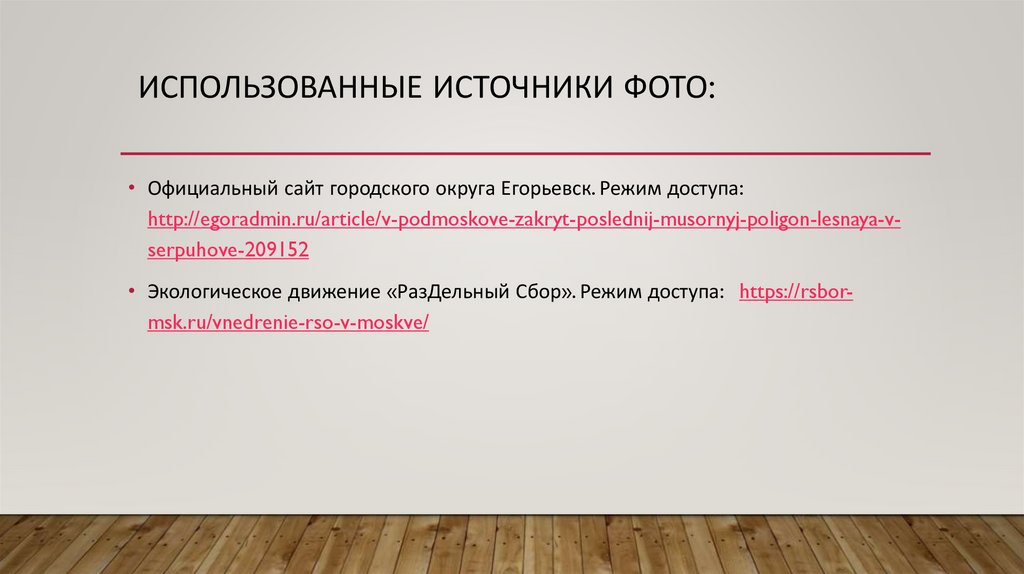 ИСПОЛЬЗОВАННЫЕ ИСТОЧНИКИ ФОТО:• Официальный сайт городского округа Егорьевск. Режим доступа: