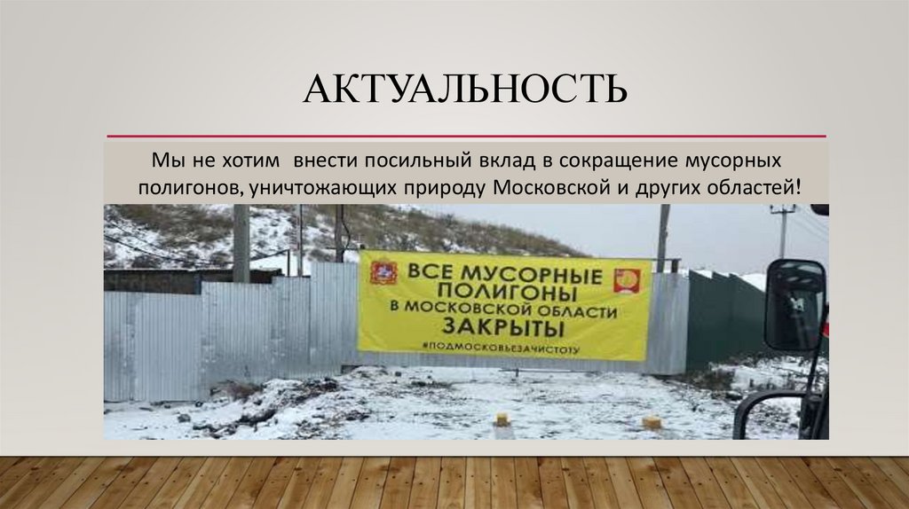 АКТУАЛЬНОСТЬМы не хотим внести посильный вклад в сокращение мусорных