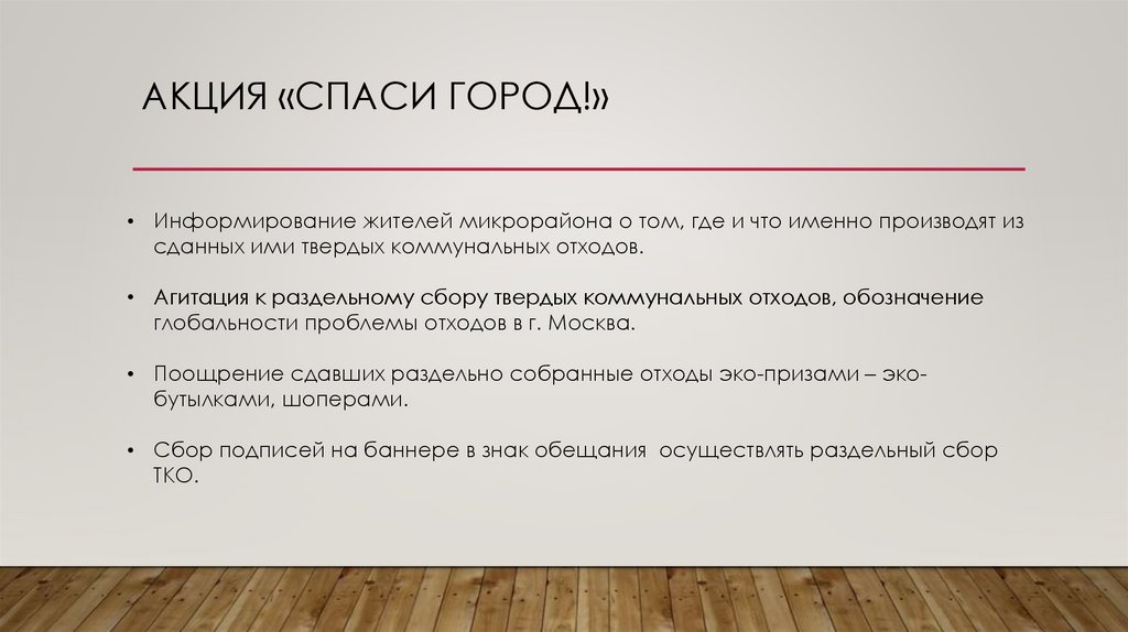 АКЦИЯ «СПАСИ ГОРОД!»• Информирование жителей микрорайона о том, где и что именно производят из