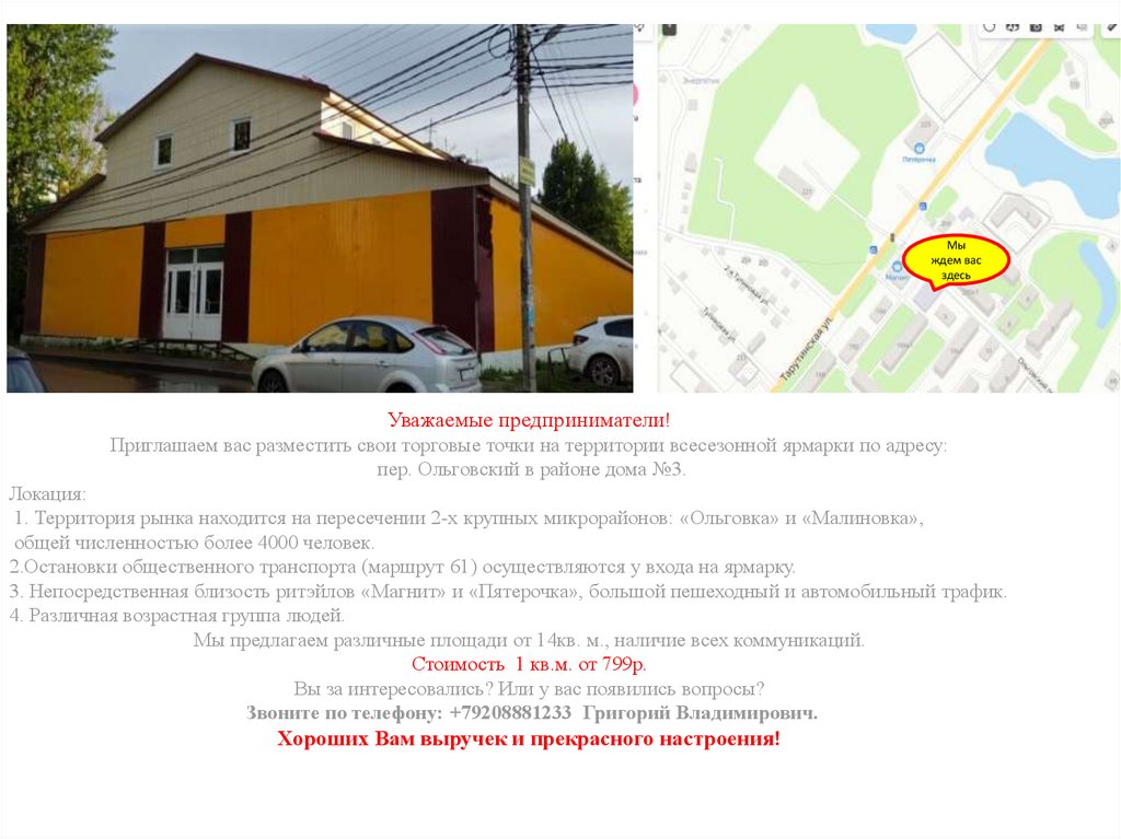 1. Территория рынка находится на пересечении 2-х крупных микрорайонов: «Ольговка» и «Малиновка»,