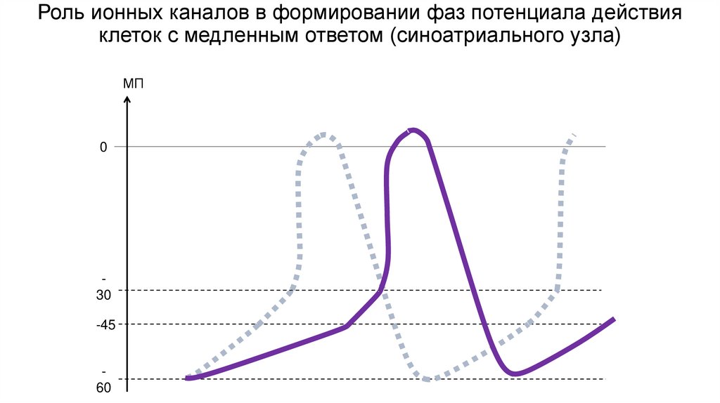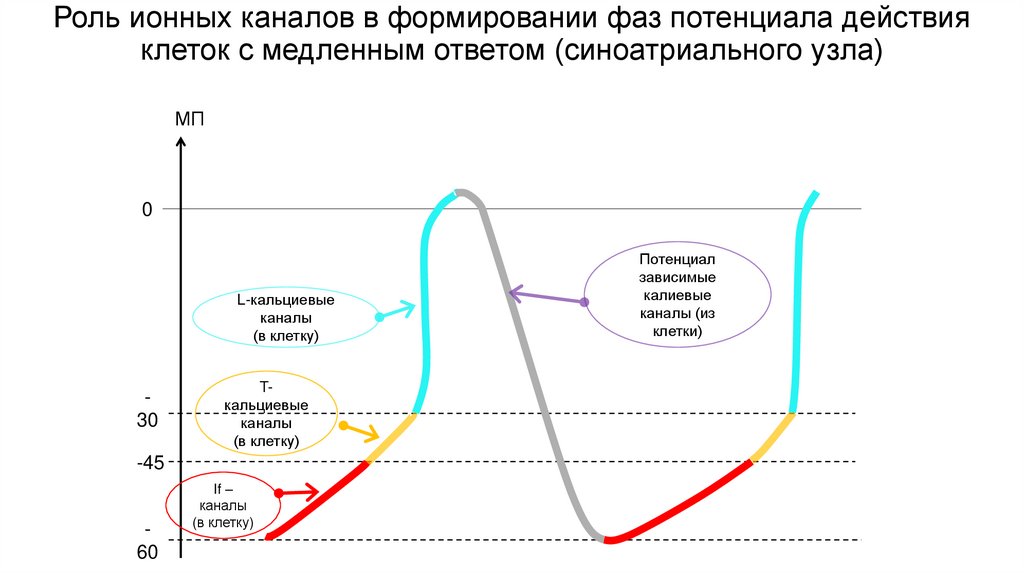 Роль ионных каналов в формировании фаз потенциала действияклеток с медленным ответом (синоатриального узла)