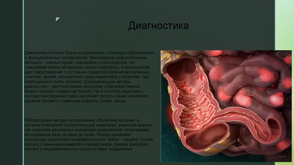 Диагностику болезни Крона осуществляют с помощью лабораторных