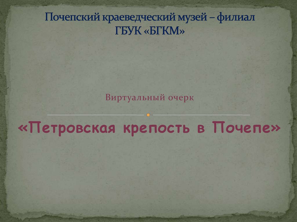 Виртуальный очерк«Петровская крепость в Почепе»