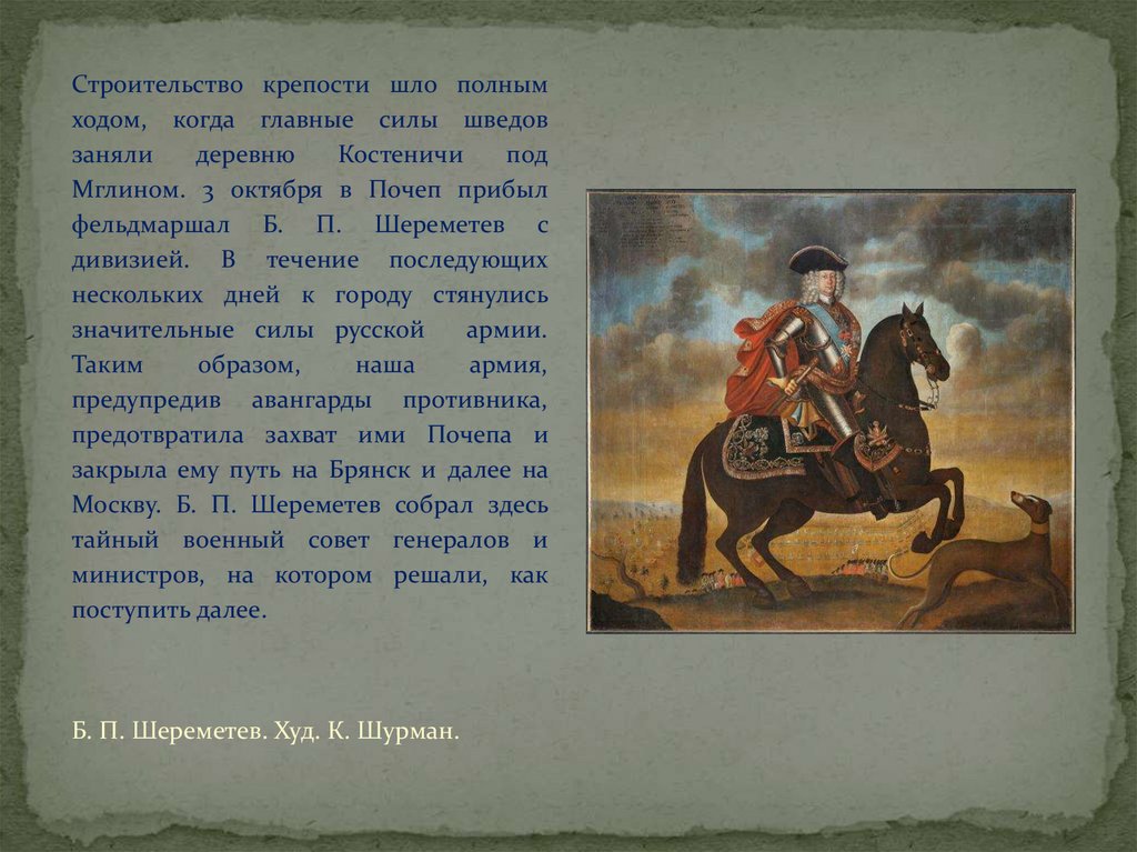 шведских войск. В Почепе были оставлены