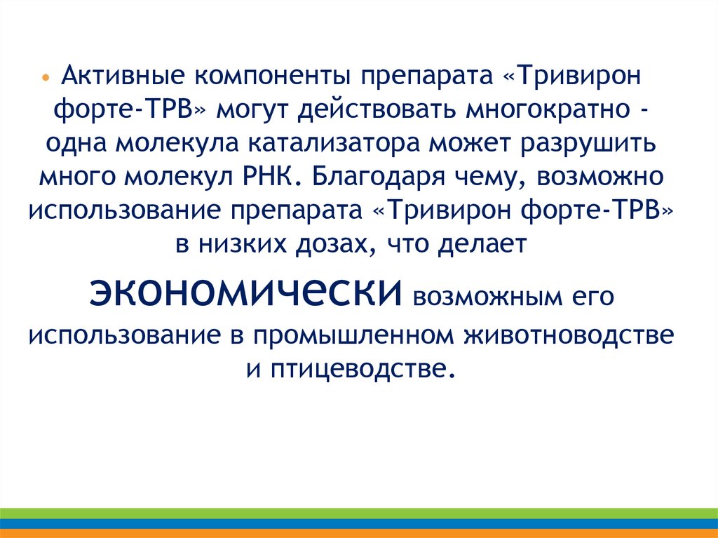 • Активные компоненты препарата «Тривиронфорте-ТРВ» могут действовать многократно одна молекула катализатора может разрушить
