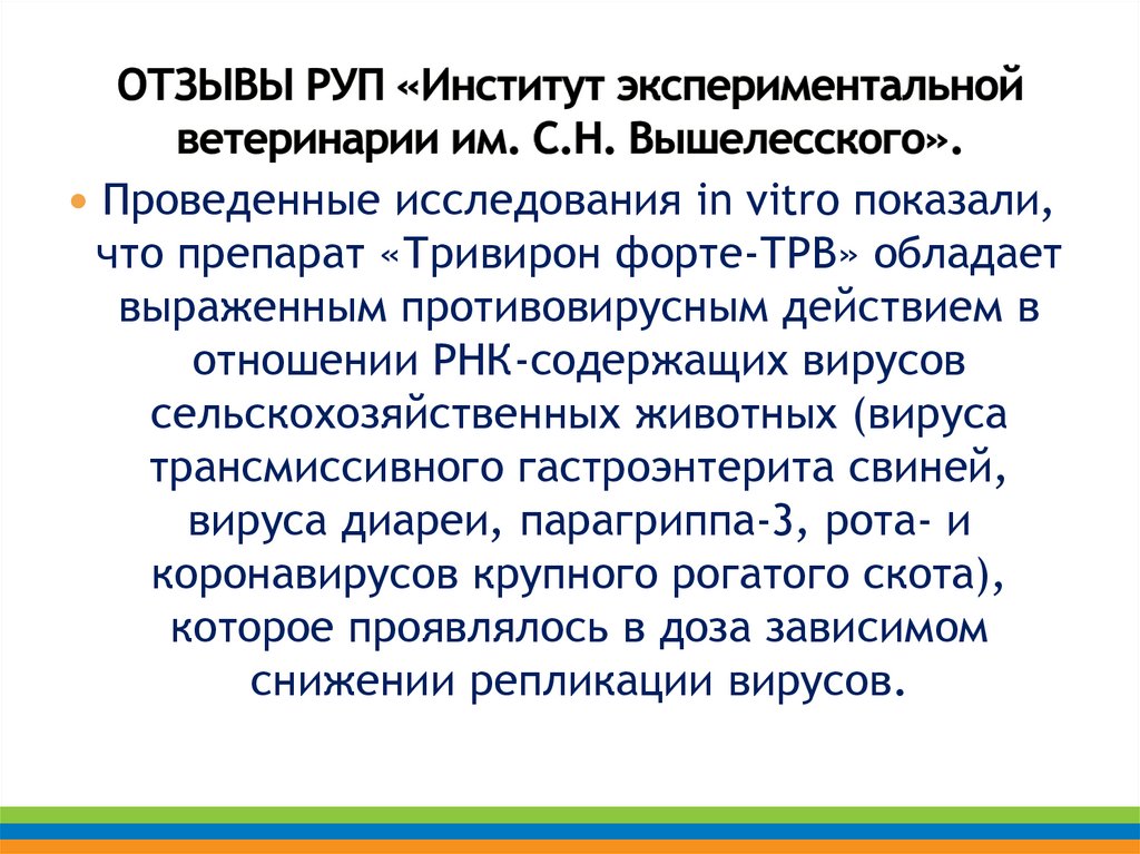 Проведенные исследования in vitro показали,что препарат «Тривирон форте-ТРВ» обладает