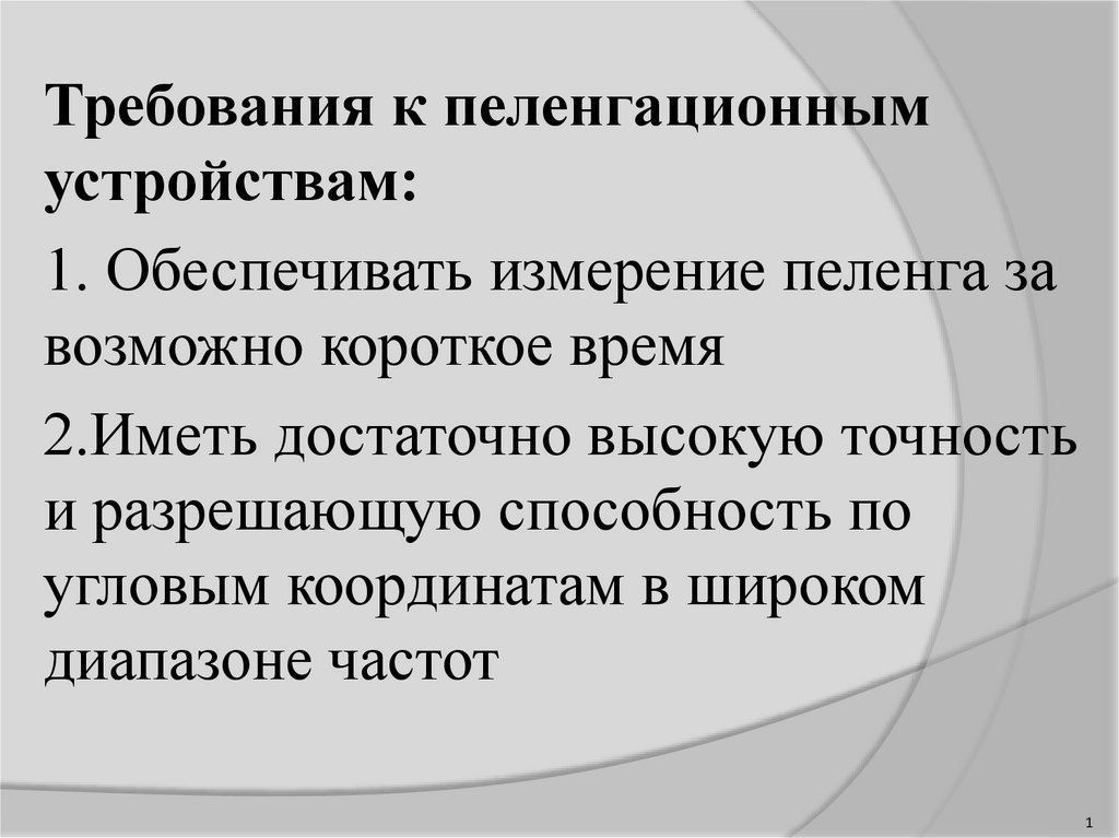 Требования к пеленгационнымустройствам: