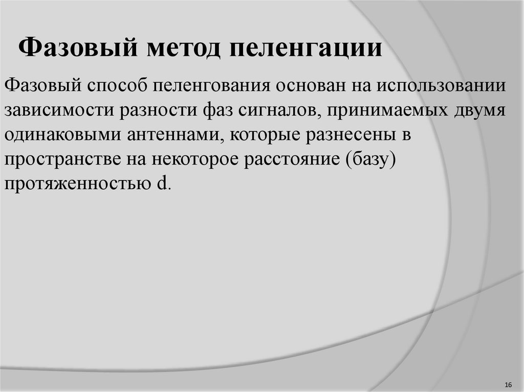 Фазовый метод пеленгацииФазовый способ пеленгования основан на использовании