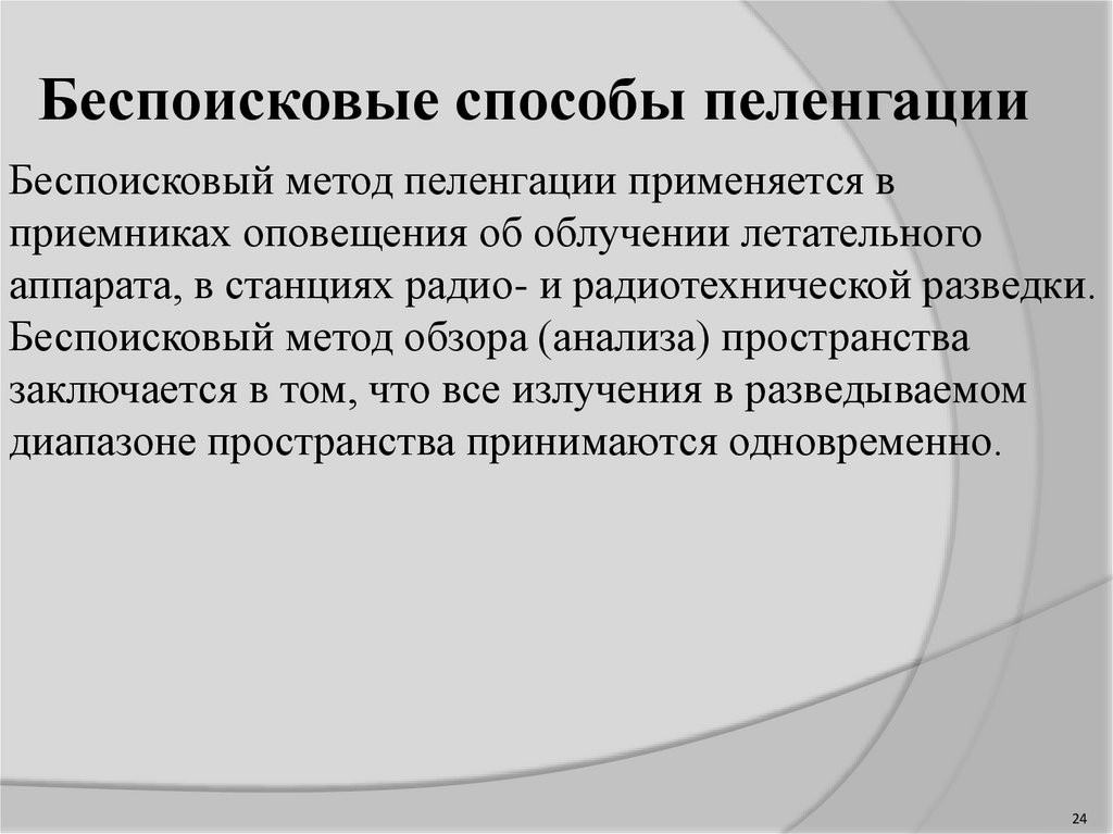 Беспоисковые способы пеленгации позволяют