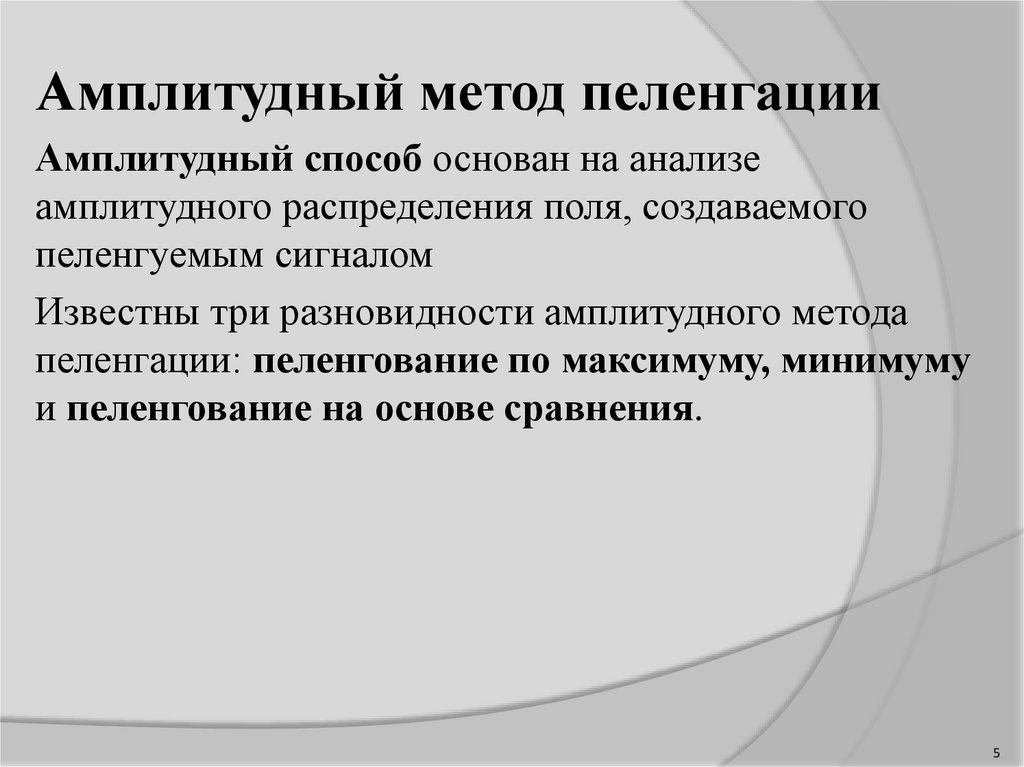 Амплитудный метод пеленгацииАмплитудный способ основан на анализе