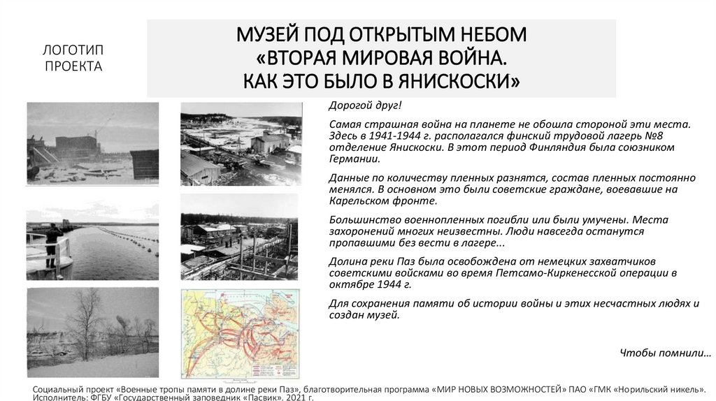 Социальный проект «Военные тропы памяти в долине реки Паз», благотворительная программа «МИР НОВЫХ ВОЗМОЖНОСТЕЙ» ПАО «ГМК «Норильский никель».