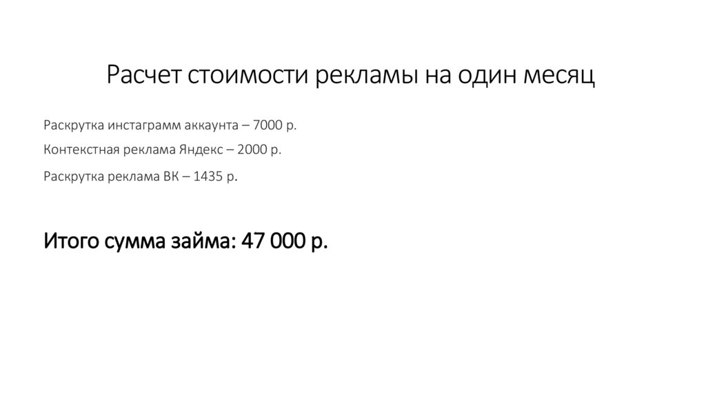 Расчет стоимости рекламы на один месяцРаскрутка инстаграмм аккаунта – 7000 р.