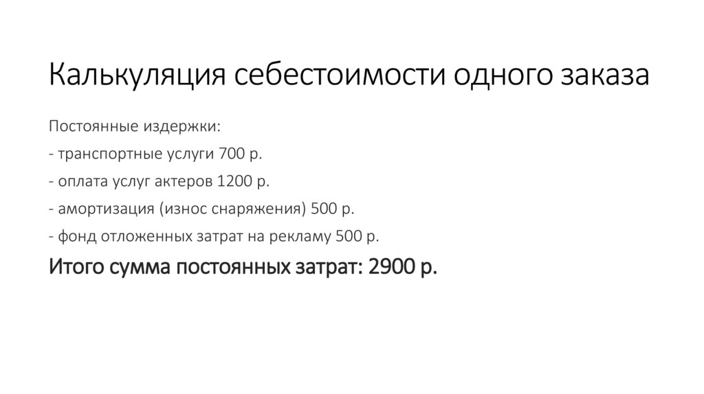 Итого сумма постоянных затрат: 2900 р.