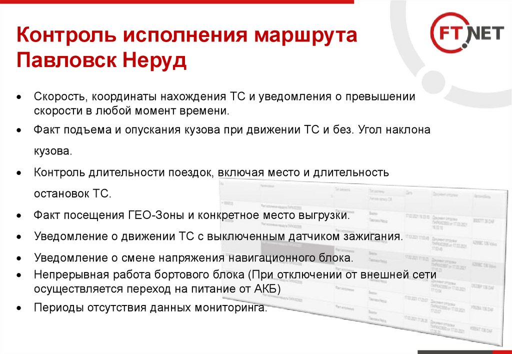 обмене по мониторингу транспорта, требованиям СБ Павловск Неруда.
