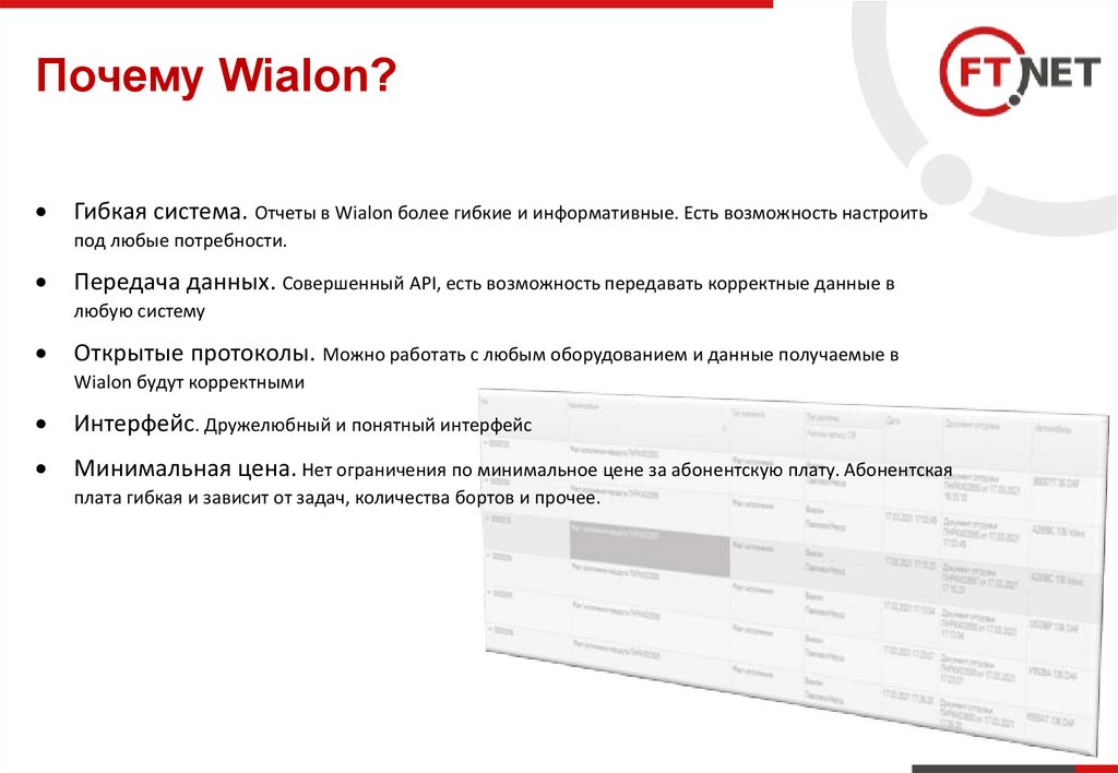 Почему Wialon?Гибкая система. Отчеты в Wialon более гибкие и информативные. Есть возможность настроить