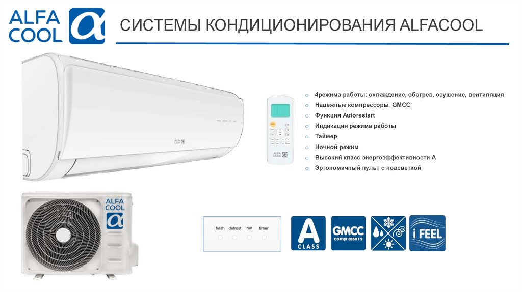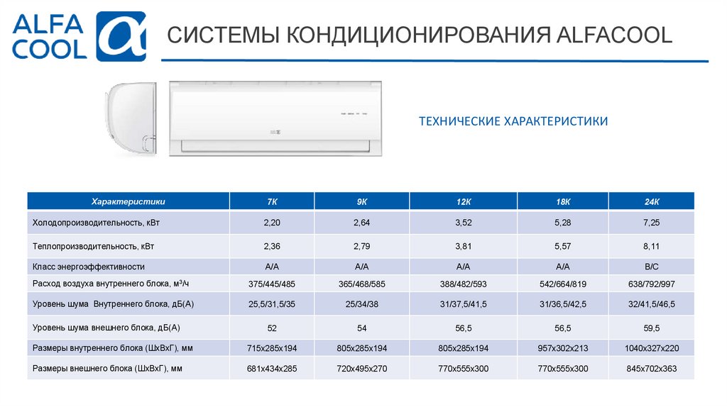 СИСТЕМЫ КОНДИЦИОНИРОВАНИЯ ALFACOOLТЕХНИЧЕСКИЕ ХАРАКТЕРИСТИКИ