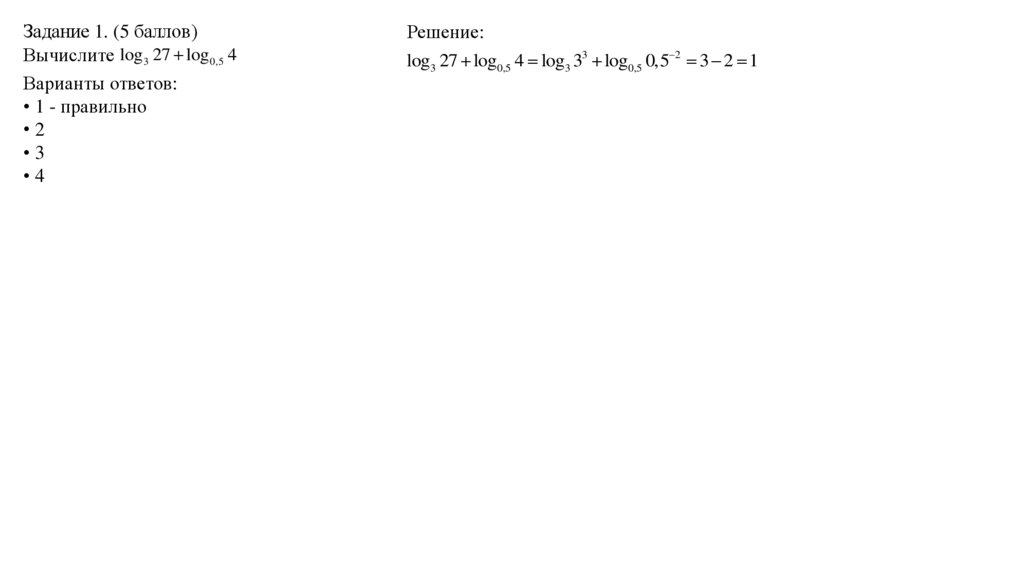 Задание 1. (5 баллов)Вычислите log3 27 log 0,5 4