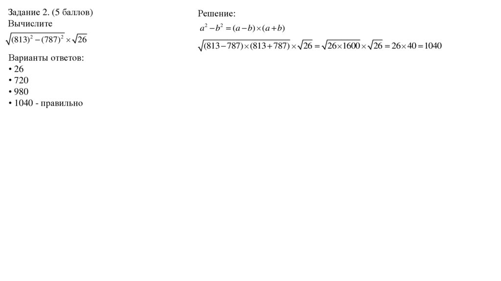Задание 2. (5 баллов)Вычислите