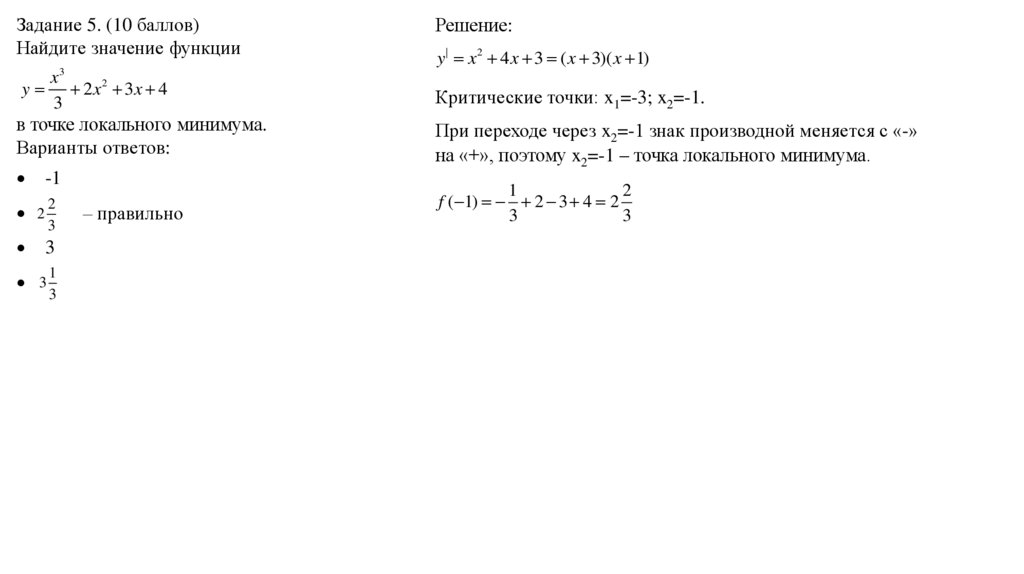 Задание 5. (10 баллов)Найдите значение функции