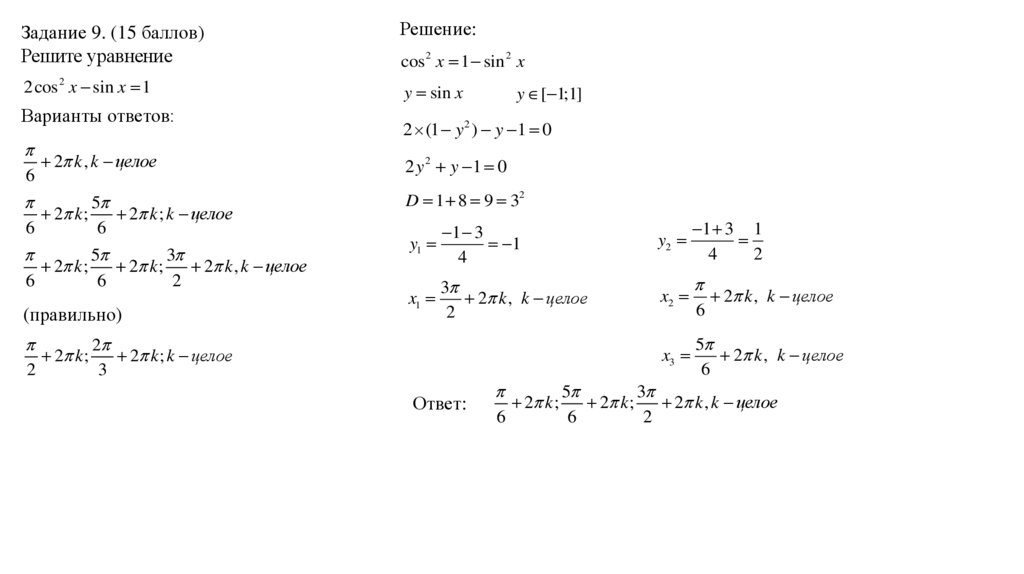 Задание 9. (15 баллов)Решите уравнение