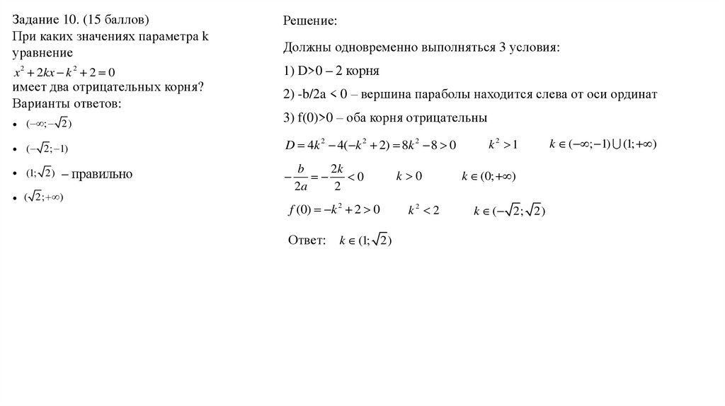 Задание 10. (15 баллов)При каких значениях параметра k