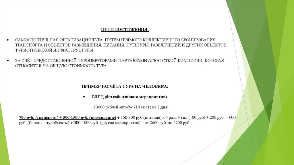 ПУТИ ДОСТИЖЕНИЯ:САМОСТОЯТЕЛЬНАЯ ОРГАНИЗАЦИЯ ТУРА ПУТЁМ ПРЯМОГО КОЛЛЕКТИВНОГО БРОНИРОВАНИЯ