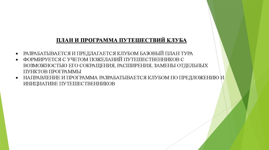 ПЛАН И ПРОГРАММА ПУТЕШЕСТВИЙ КЛУБАРАЗРАБАТЫВАЕТСЯ И ПРЕДЛАГАЕТСЯ КЛУБОМ БАЗОВЫЙ ПЛАН ТУРА