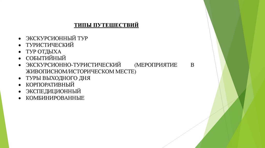 ТИПЫ ПУТЕШЕСТВИЙЭКСКУРСИОННЫЙ ТУР
