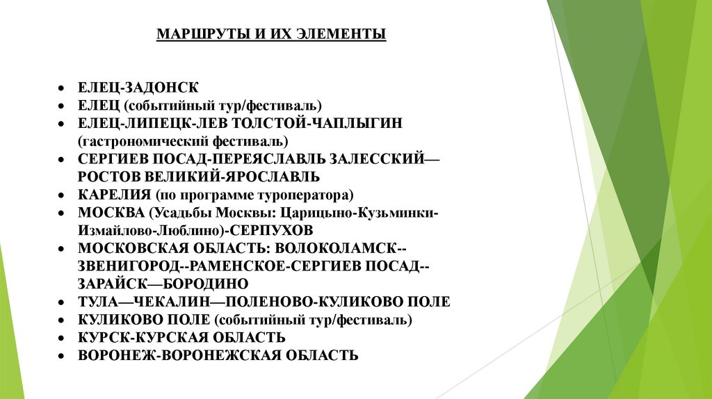 МАРШРУТЫ И ИХ ЭЛЕМЕНТЫЕЛЕЦ-ЗАДОНСК