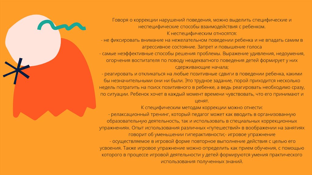 Говоря о коррекции нарушений поведения, можно выделить специфические инеспецифические способы взаимодействия с ребенком.
