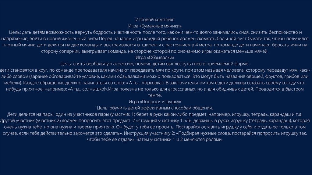 Игровой комплексИгра «Бумажные мячики»