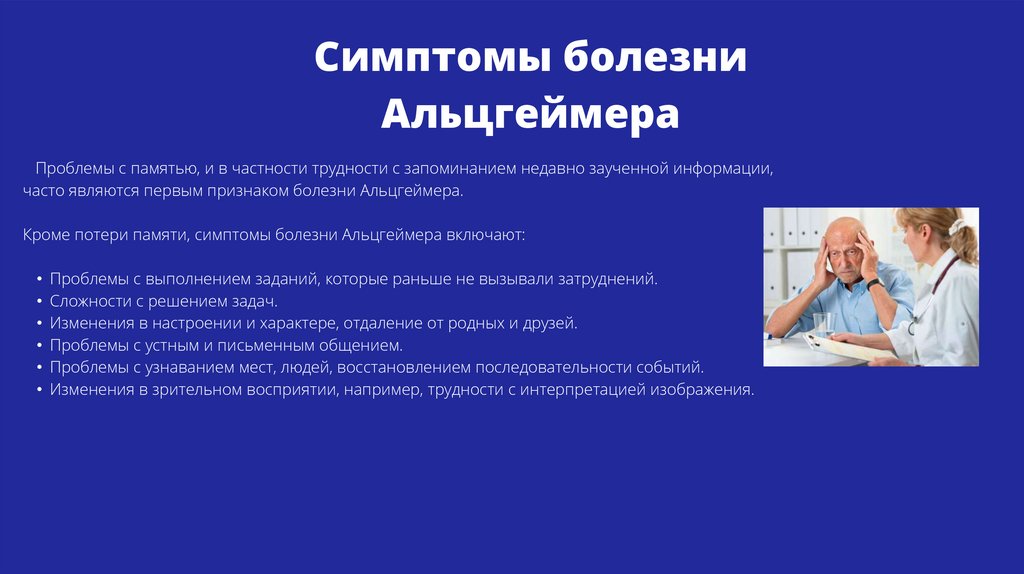 Симптомы болезниАльцгеймера