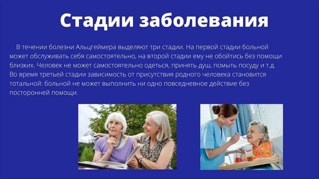 Стадии заболеванияВ течении болезни Альцгеймера выделяют три стадии. На первой стадии больной