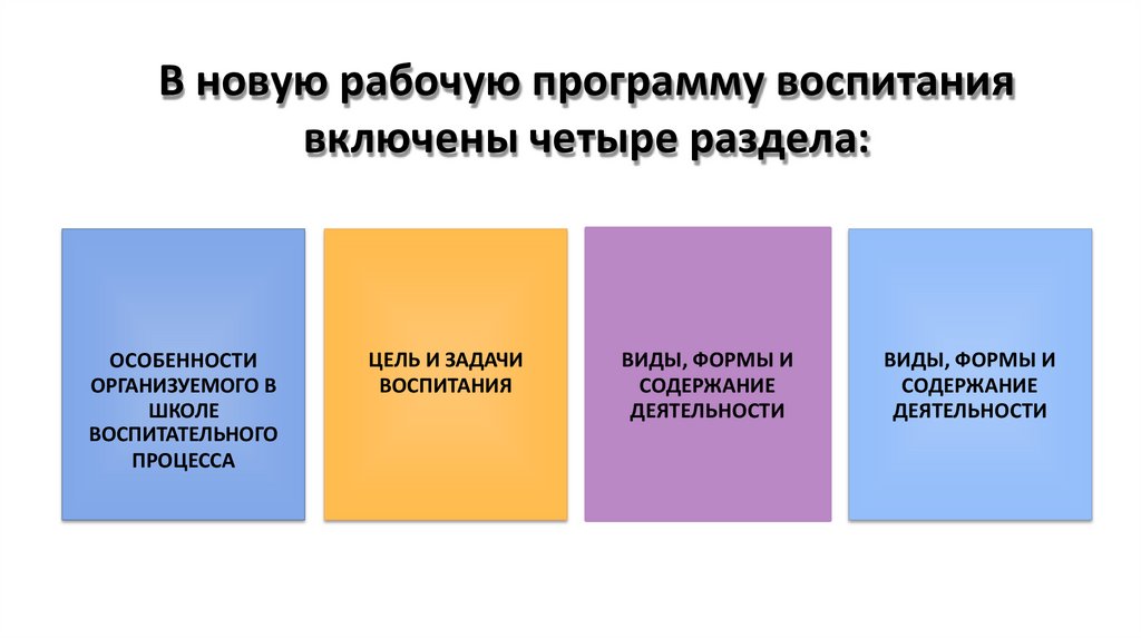 В новую рабочую программу воспитаниявключены четыре раздела: