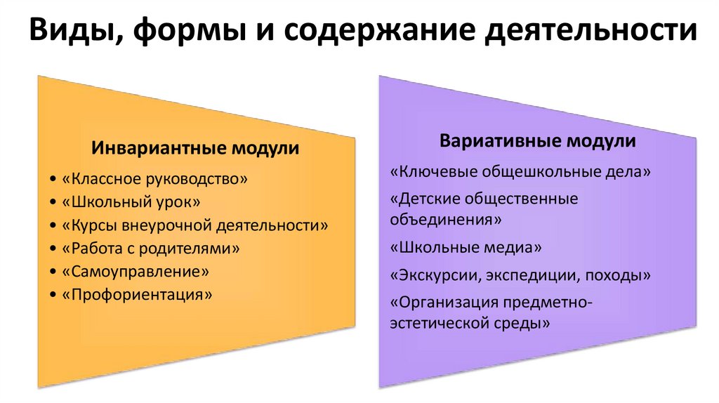 Виды, формы и содержание деятельностиИнвариантные модули