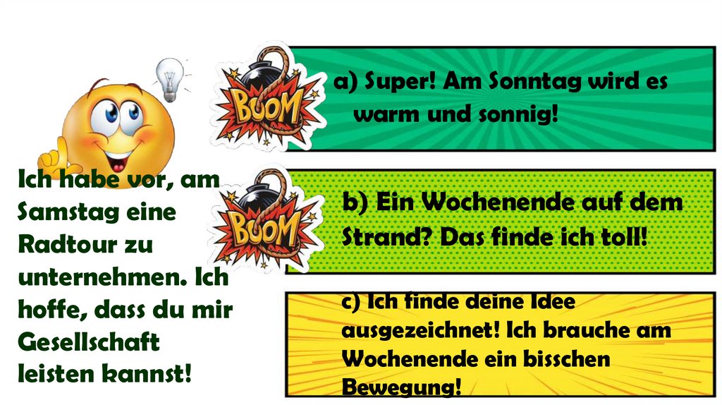 a) Super! Am Sonntag wird eswarm und sonnig!
