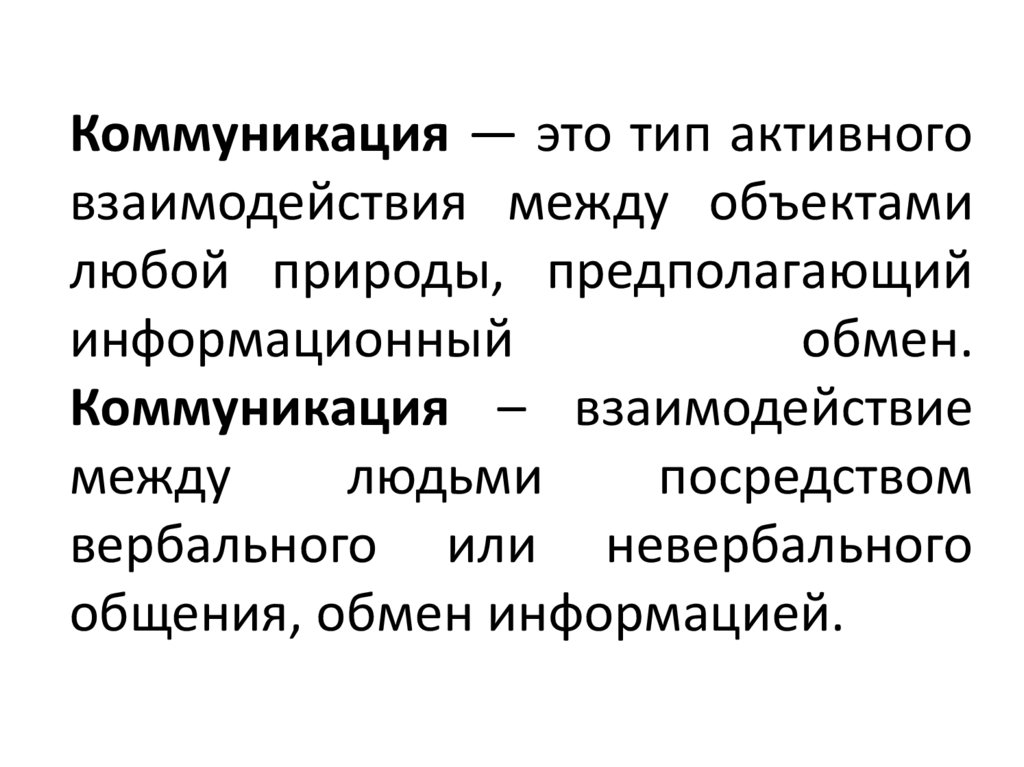 Коммуникация — это тип активноговзаимодействия между объектами
