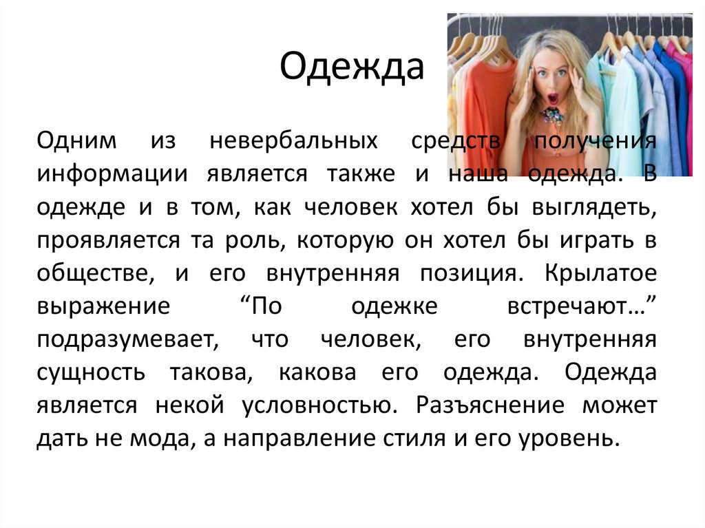 ОдеждаОдним из невербальных средств получения