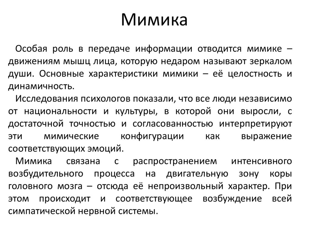 души. Основные характеристики мимики – её целостность и