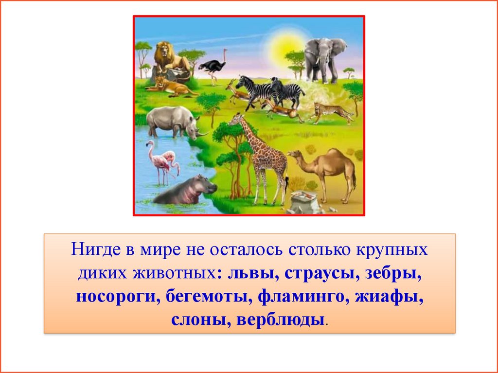 Нигде в мире не осталось столько крупныхдиких животных: львы, страусы, зебры,