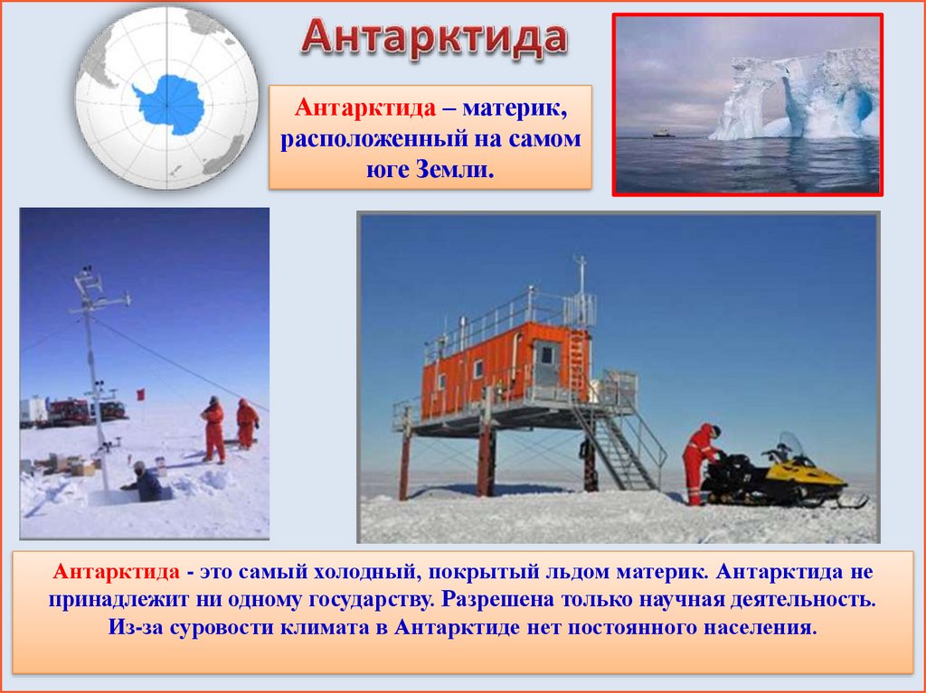 Антарктида - это самый холодный, покрытый льдом материк. Антарктида не