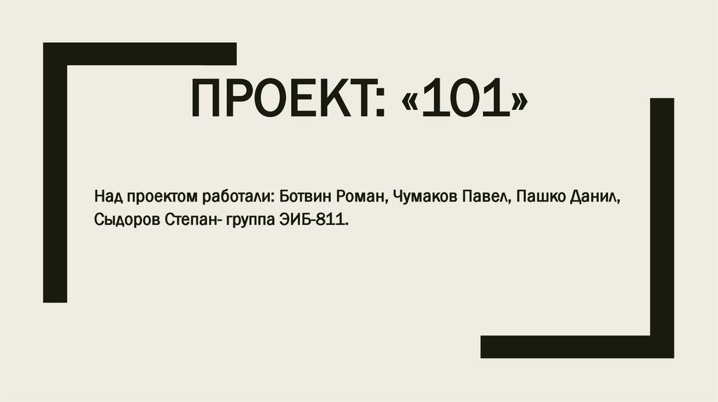 ПРОЕКТ: «101»Над проектом работали: Ботвин Роман, Чумаков Павел, Пашко Данил,