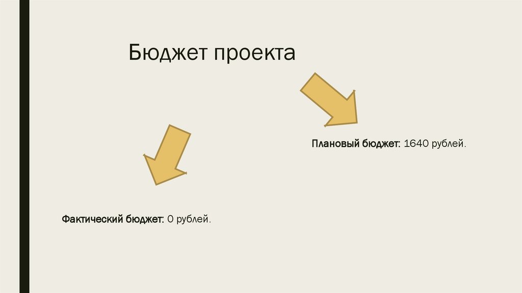 Бюджет проектаПлановый бюджет: 1640 рублей.