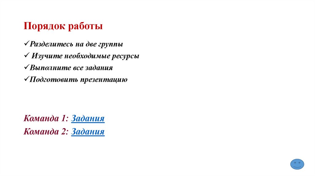 ЗаданиеДля прохождения веб-квеста необходимо выполнить следующие задания: