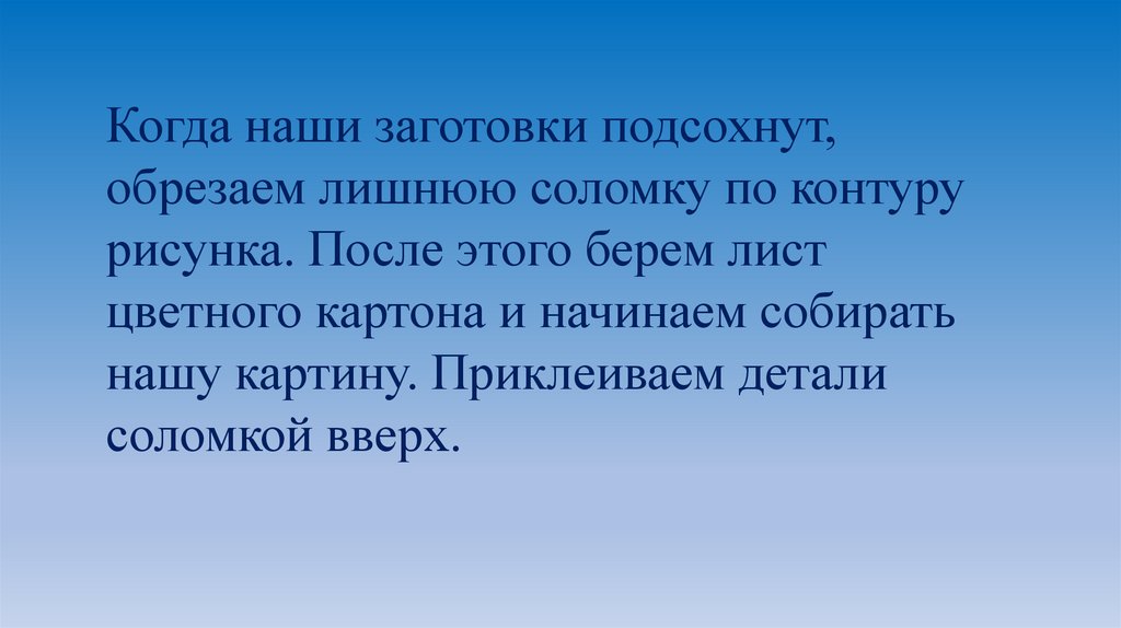 Когда наши заготовки подсохнут,обрезаем лишнюю соломку по контуру