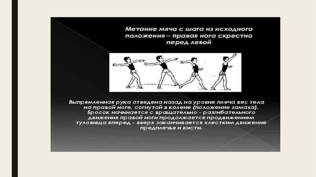 ■ Метание малого мяча на дальность стоя лицом по направлению к метанию Сместа ,с полшага, с шага левой ногой