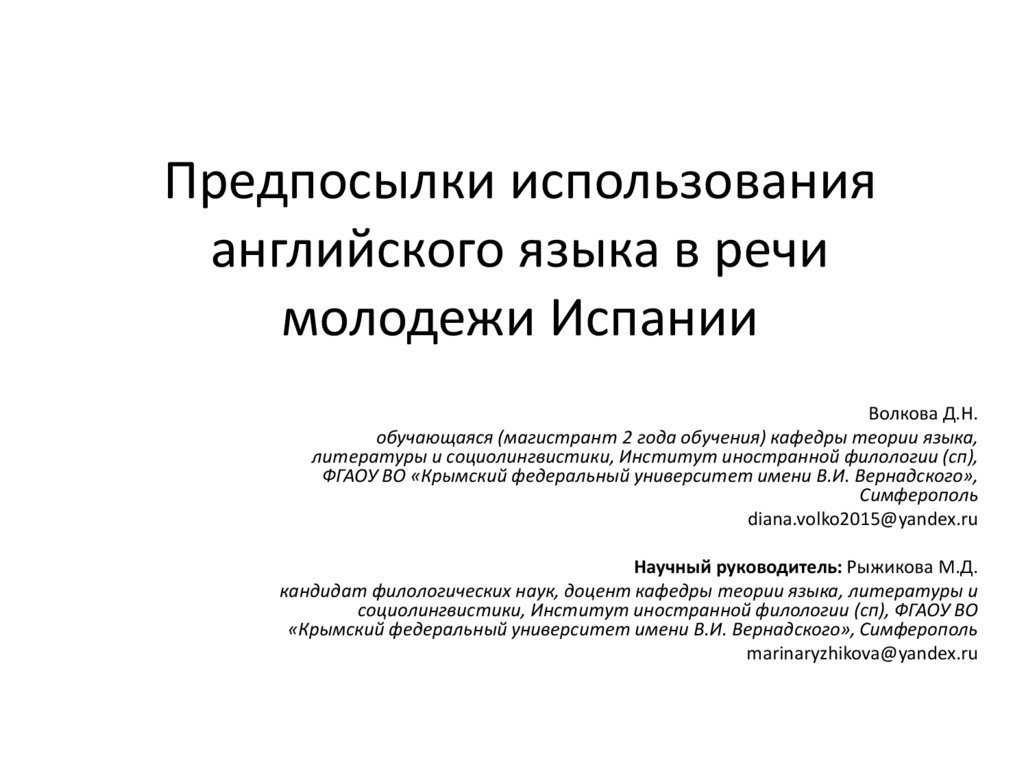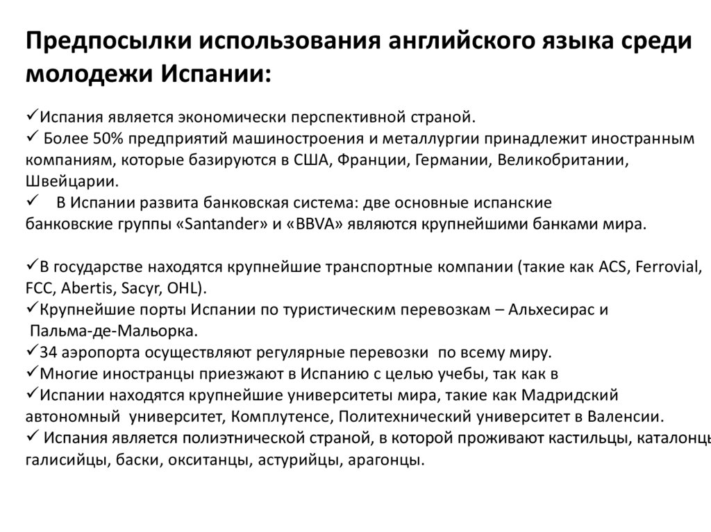 Предпосылки использования английского языка средимолодежи Испании: