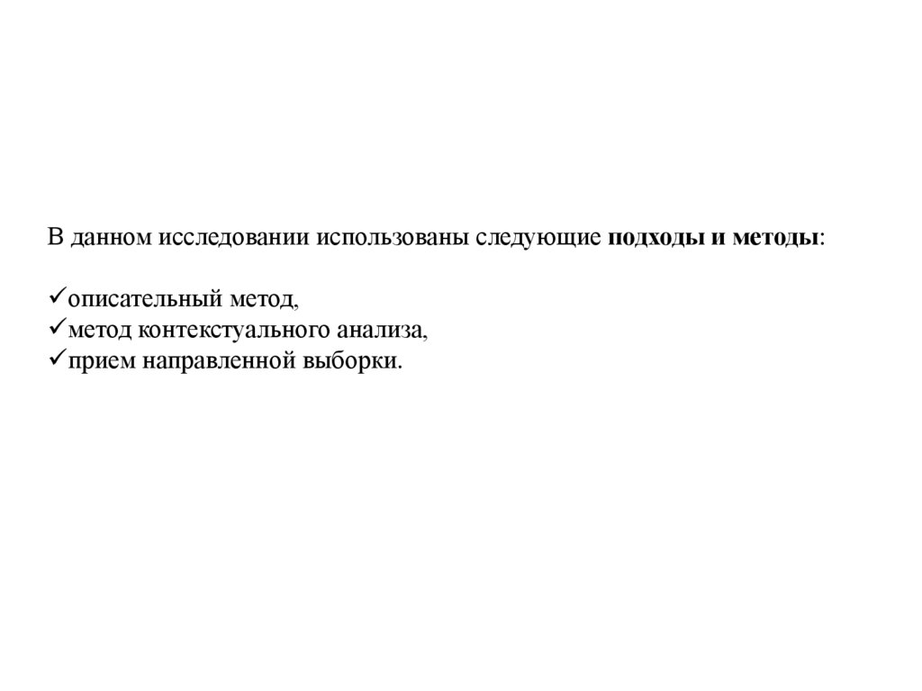 В данном исследовании использованы следующие подходы и методы:описательный метод,