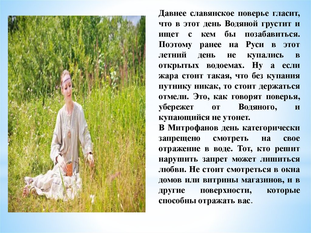 Давнее славянское поверье гласит,что в этот день Водяной грустит и