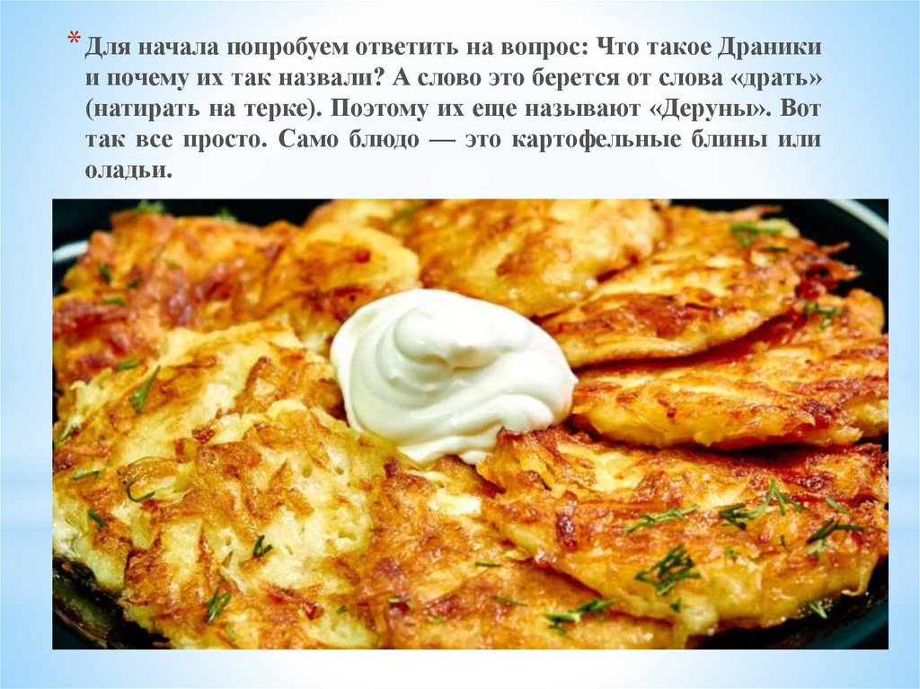 * Для начала попробуем ответить на вопрос: Что такое Драникии почему их так назвали? А слово это берется от слова «драть»